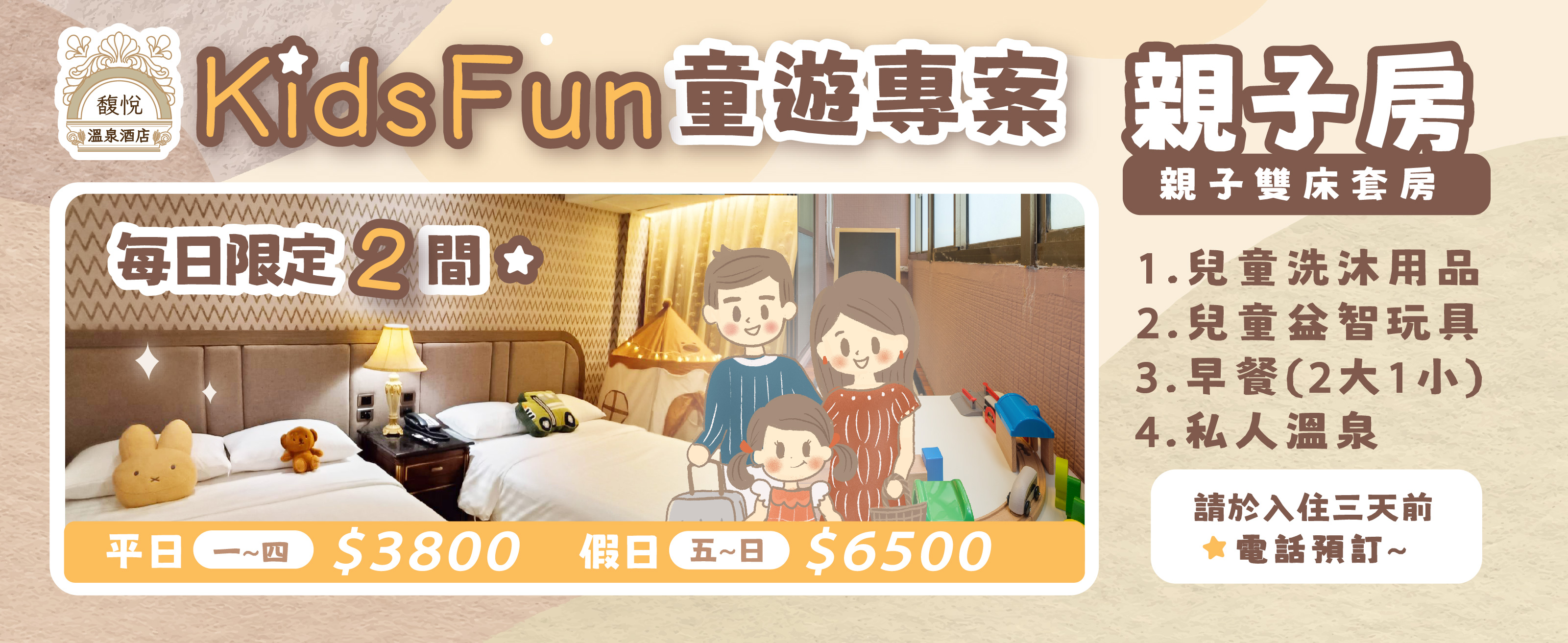*Occupancy: 2 adults and 1 child. Maximum occupancy per room: 2 adults and 2 children. If the second child is over 120 cm in height, an additional charge of NT$500 will apply, including one breakfast and supplies.